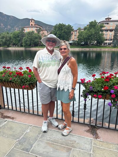Keith and I both hang out at the gym, he used to be a weight lifter. We love being with our families and friends. (The most recent pic of us is at our great-niece’s baptism).  We have a 1972 Ford pickup and we go to classic car shows in the summer.  We do traveling when we can.  I learned to do stained glass in Salida, and still love making windows and cooking.  I also have my many gardens and volunteer at church.